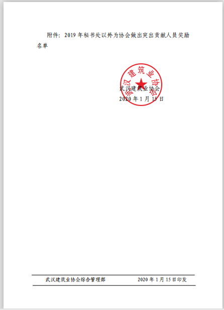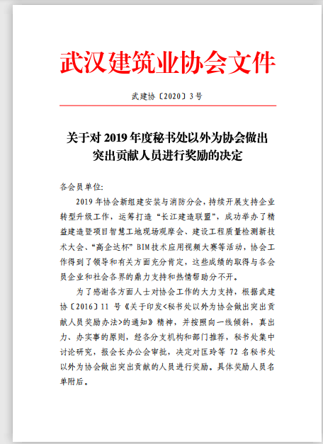 祝賀公司總經理李澤衛同志榮獲武漢建筑業協會2019年度秘書處以外為協會做出突出貢獻人員二等獎!
